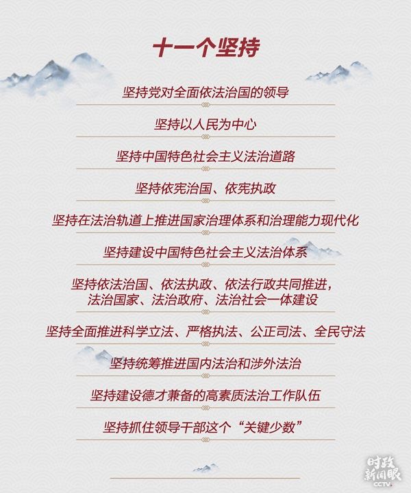 這次會議提出的習(xí)近平法治思想,深刻回答了新時代為什么實行全面依法治國、怎樣實行全面依法治國等一系列重大問題。習(xí)近平總書記在講話中強調(diào)的“11個堅持”,構(gòu)成了習(xí)近平法治思想的主要內(nèi)涵。