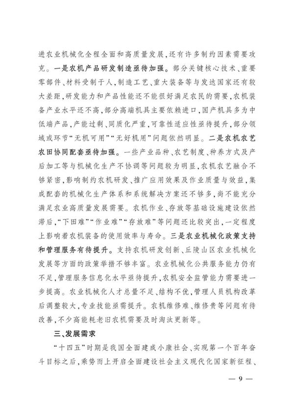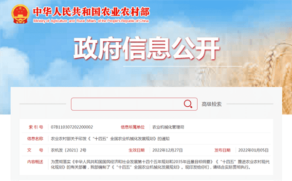 農業農村部關于印發《“十四五”全國農業機械化發展規劃》的通知