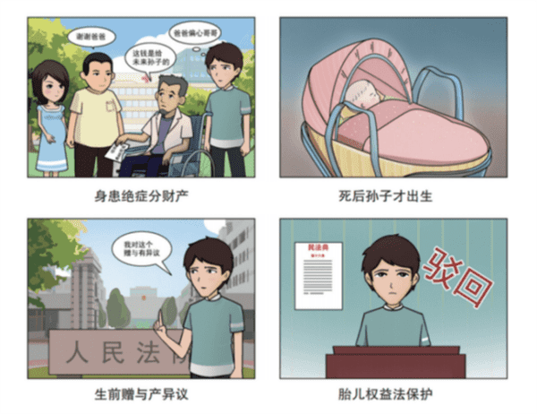 《中華人民共和國民法典》第16條:涉及遺產(chǎn)繼承、接受贈與等胎兒利益保護(hù)的,胎兒視為具有民事權(quán)利能力。但是,胎兒娩出時(shí)為死體的,其民事權(quán)利能力自始不存在