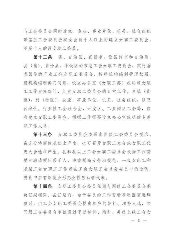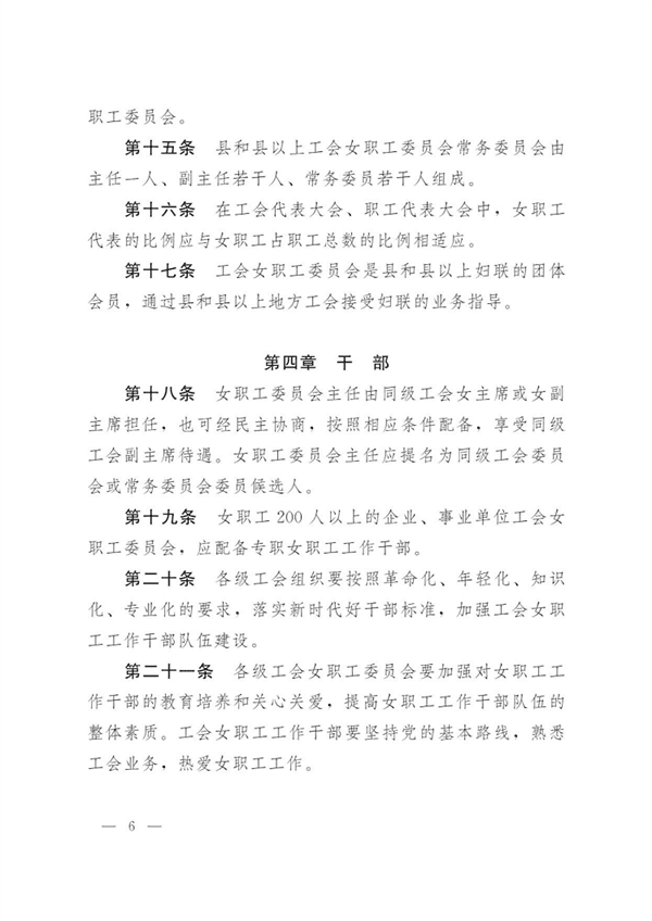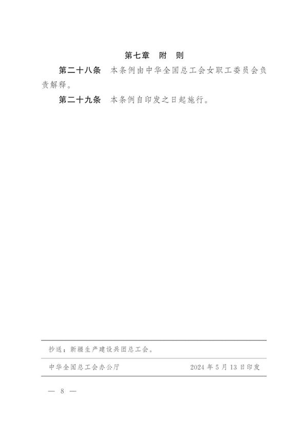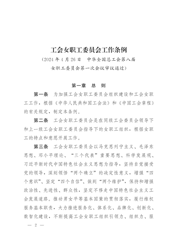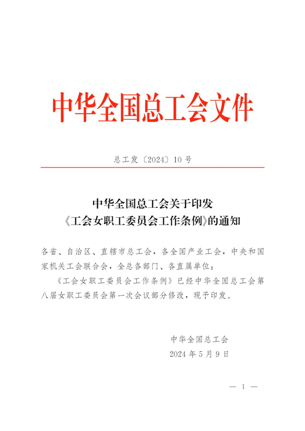 法律法規:總工發〔2024〕10號中華全國總工會關于印發《工會女職工委員會工作條例》的通知