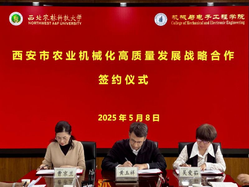 為進一步推動西安市農機化高質量發展,陜西省農業機械研究所有限公司、西北農林科技大學機械與電子工程學院與西安市農機監理與推廣總站于5月8日在楊凌示范區聯合舉辦“西安市農業機械化高質量發展戰略合作簽約儀式”。三方將圍繞技術創新、成果轉化、人才培養等領域深化合作,共同構建農業機械化發展新格局,助力西安市農業產業提質增效。