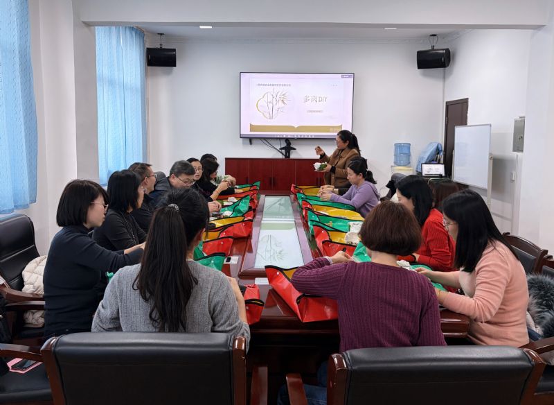 朗誦結束后,多肉DIY活動溫馨開啟。女職工們圍坐在一起,精心搭配多肉植株、鋪設盆土,充分發揮創意,親手打造專屬自己的多肉盆栽。大家相互交流技巧、分享心得,歡聲笑語間,一盆盆形態可愛、生機盎然的多肉作品應運而生,不僅舒緩了工作壓力,更收獲了動手的快樂與成就感。