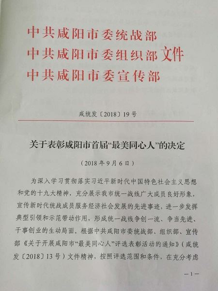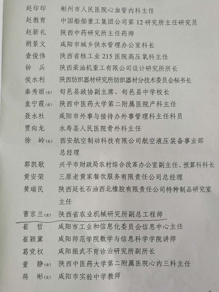 陜西省農業機械研究所副總工程師、質檢總站副站長、高級工程師曹京蘭同志榮獲咸陽市首屆“最美同心人”榮譽稱號。