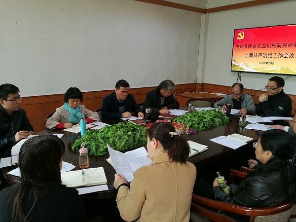 3月26日上午,陜西省農業機械研究所黨委召開2019年全面從嚴治黨工作會議,會議由黨委委員、黨群工作部主任馬新利主持,黨委書記、所長賀功民出席并講話,所領導班子成員、黨支部書記、中層干部、黨支部委員參加了會議。