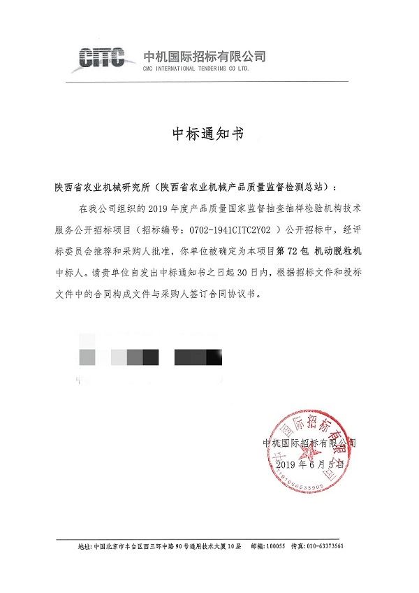 據中國政府采購網消息,中機國際招標有限公司受國家市場監督管理總局科技和財務司委托,根據《中華人民共和國政府采購法》等有關規定,對2019年度產品質量國家監督抽查抽樣檢驗機構技術服務公開招標項目進行公開招標。6月5日,中國政府采購網發布國家市場監督管理總局科技和財務司2019年度產品質量國家監督抽查抽樣檢驗機構技術服務公開招標項目中標公告,陜西省農業機械研究所(陜西省農業機械產品質量監督檢測總站)一舉中標,成為國家監督抽查機動脫粒機產品承檢機構,并是三家單位中的牽頭單位。這是我所(站)首次參加國抽投標并中標承擔國家級監督抽查任務。