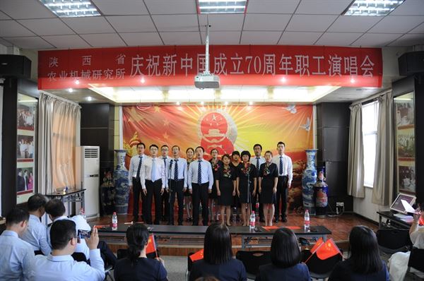今年,是新中國成立70周年,也是陜西省農(nóng)業(yè)機(jī)械研究所建所61周年。9月29日下午,我所舉辦了以“奮斗吧,新時(shí)代的農(nóng)機(jī)人”為主題的職工演唱會(huì),慶祝中華人民共和國成立70周年。職工們用大合唱、獨(dú)唱、三句半、配樂詩朗誦、吉它彈唱等多種表演形式,表達(dá)對(duì)祖國的深情祝福,對(duì)農(nóng)機(jī)所的無限熱愛。《我們走在大路上》《中國中國鮮紅的太陽永不落》《國家》等一首首贊歌唱出了對(duì)祖國的心聲,唱出了拼搏向上的熱情,唱出了團(tuán)結(jié)一心的力量,唱出了農(nóng)機(jī)人的光榮與自豪。演唱會(huì)最后,全體職工揮舞國旗,高唱《我和我的祖國》,激情滿懷向建國70周年獻(xiàn)禮,祝福我們的祖國更加繁榮昌盛,人民幸福美滿!